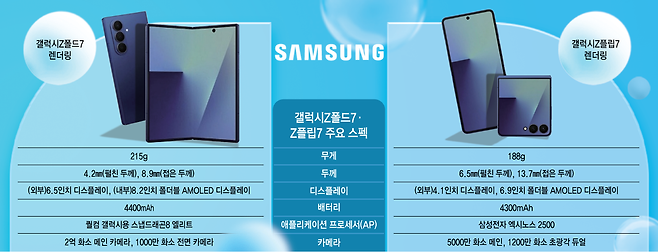 갤럭시Z폴드7은 초고화소 카메라와 초슬림 설계를 바탕으로 휴대성과 심미감을, 갤럭시Z플립7은 성능과 효율성을 전면에 내세운다. 특히 두 제품 모두 폴더블 전용 인공지능(AI)을 통해 소비자들의 수요를 공략할 계획이다.