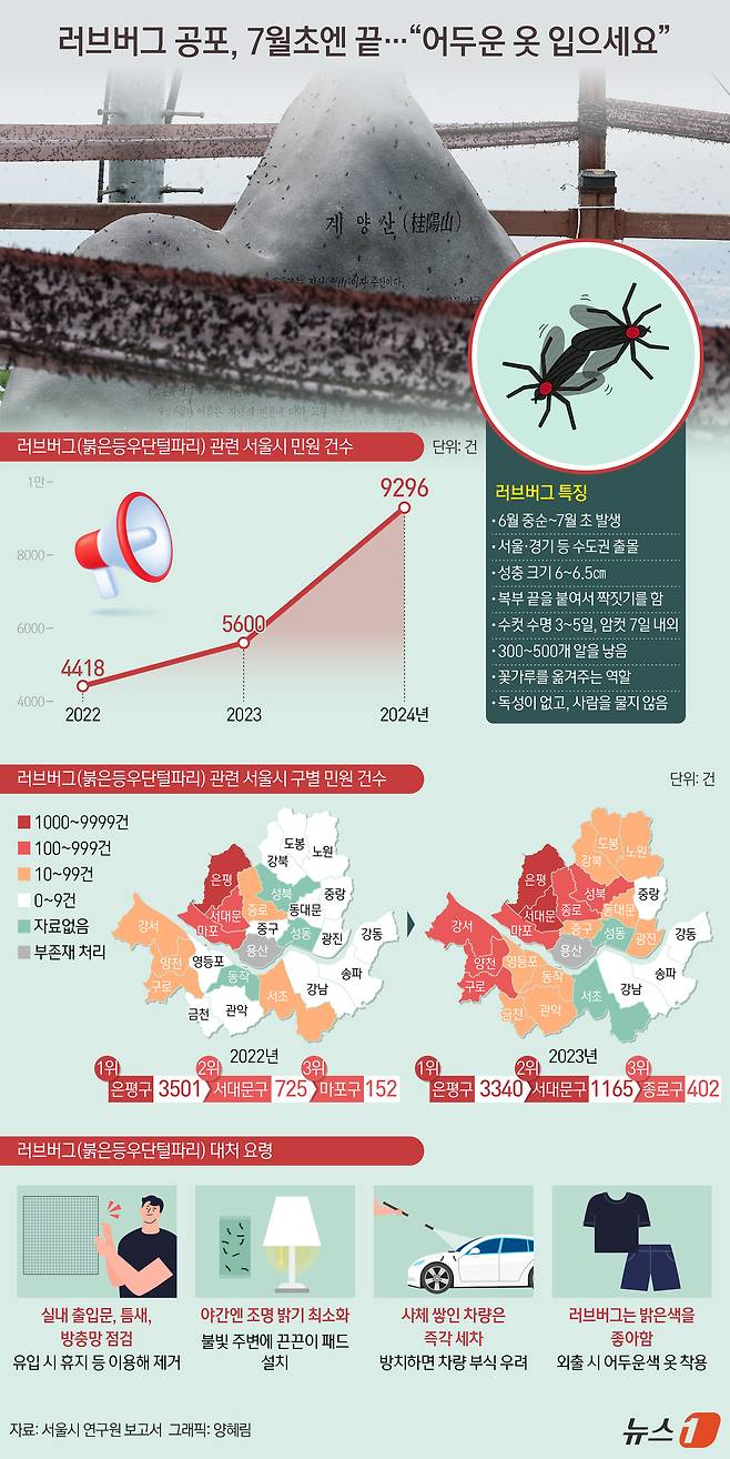[오늘의 그래픽] 러브버그 공포, 7월초엔 끝…"어두운 옷 입으세요"
