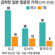 엑스포 덕에 승승장구했던 오사카행 왕복 항공권 가격도 반토막 수준으로 밀려났다. 7월 말~8월 초 제주항공, 티웨이 등 저가항공의 경우 12만~13만원대면 원하는 시간대 항공편을 구할 수 있다. 평소 50만~60만원대였던 도쿄행 왕복 항공권 역시 7월 20일 전까지는 왕복 16만원대에 형성돼 있다.