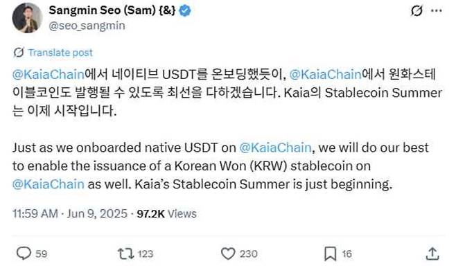 한국에서 가장 많이 언급되고 있는 네트워크는 단연 카이아(Kaia)이다. 카이아의 서상민 의장(Chairman)은 최근 "카이아가 네이티브 USDT를 온보딩했듯이, 원화 스테이블코인도 발행될 수 있도록 최선을 다하겠다"라는 메세지를 전달하며, 원화 스테이블코인에 대한 의지를 피력했다.