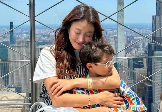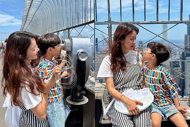 사진에는 미국 엠파이어스테이트 빌딩 앞에서 아들과 기념 사진을 촬영한 이시영의 모습이 담겼다.