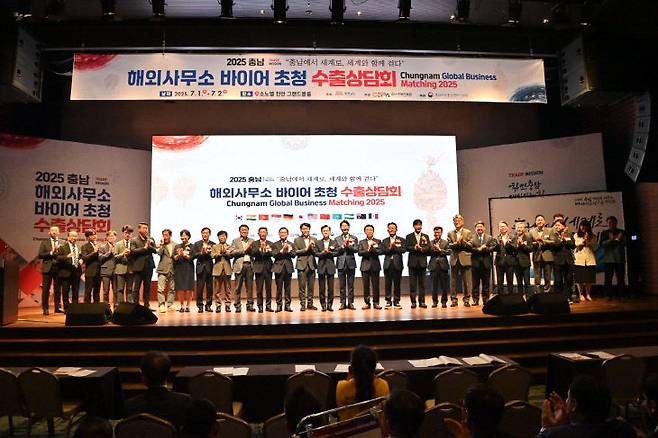 도는 1일 소노벨천안에서 김태흠 지사와 안종혁 도의회 기획경제위원장, 해외 바이어, 도내 기업 대표 등 500여 명이 참석한 가운데 '2025 해외사무소 바이어 초청 수출상담회' 개막식을 개최했다.