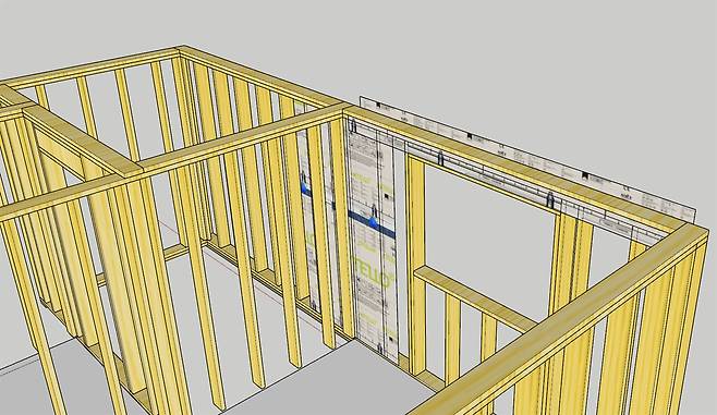 그래서 내가 직접 3D 모델링 프로그램인 스케치업을 이용해 도면대로 기초 면과 골조까지 그려봤다. 우리 집의 목구조는 어떨지 궁금함이 컸다. 시공 공부는 깊게 안 해봤지만 16인치 간격으로 셋기둥도 세워보고 여러 구조를 되는대로 만들어 봤다. 시공사 사장은 건축주가 이런 걸 그려본다는 게 신기했는지 그 스케치업 파일을 자재 확인차 보내 달라고 요청했다.