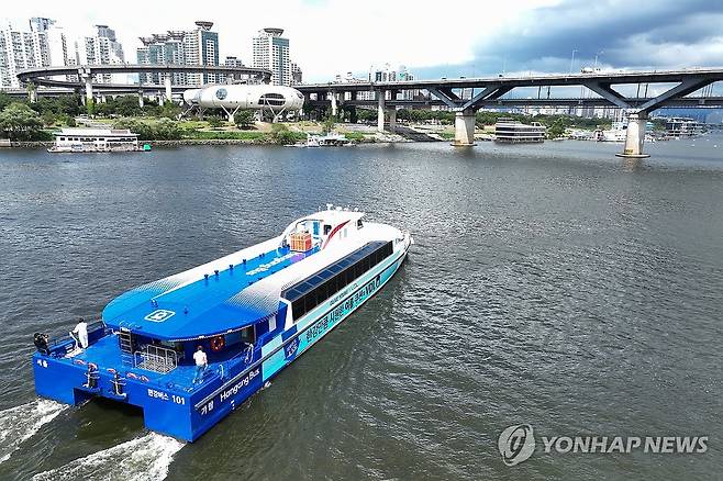 한강버스는 서울시가 한강 유역에 처음 도입하는 친환경 수상 대중교통수단으로 마곡∼망원∼여의도∼옥수∼압구정∼뚝섬∼잠실 7개 선착장, 약 31.5㎞의 거리를 오간다.