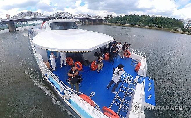 한강 유역에 처음 도입되는 친환경 수상 대중교통수단인 한강버스는 9월 중 정식운항을 통해 마곡~망원~여의도~옥수~압구정~뚝섬~잠실(마곡~여의도~잠실 급행 병행 운영) 7개 선착장, 약 31.5km의 거리를 운항할 예정이다. 2025.7.1
