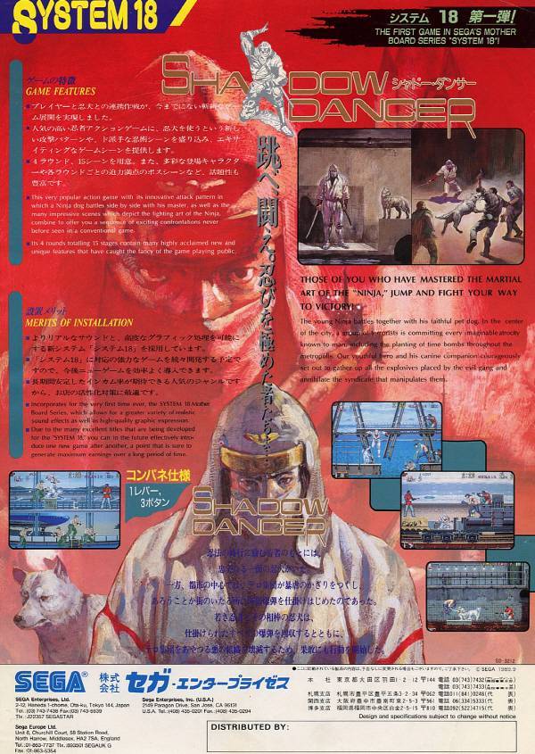 이 게임은 '시노비' 시리즈에 닌견(忍犬)이 추가된 개념으로 특이한 게임성을 시도했던 것이 특징입니다. 주인공 캐릭터가 좀 더 커졌고, 그래픽과 박진감 있는 인술(忍術), 닌견의 이용(적을 물어서 행동불능 상태로 만듬) 등이 새롭지만 개인적으로는 아케이드판 '시노비'에서 크게 발전된 모습은 보이지 않고 있어서 다소 아쉬웠죠.