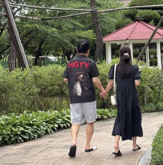 1일 김지민은 "날씨 좋당! 데이트♥"라며 다정한 두 사람의 뒷모습을 공개했다.