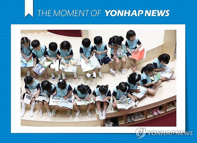 (대구=연합뉴스) 윤관식 기자 = 무더위가 계속되며 전국 대부분 지역에 폭염특보가 발효 중인 1일 대구 달성군 달성어린이숲도서관에 견학 온 달성군청직장어린이집 원생들이 책을 보고 있다.