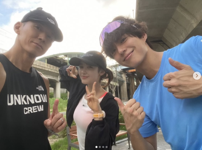 [OSEN=유수연 기자] 가수 션이 박보검, 뉴진스 다니엘과 함께한 조깅 인증샷을 공개했다.