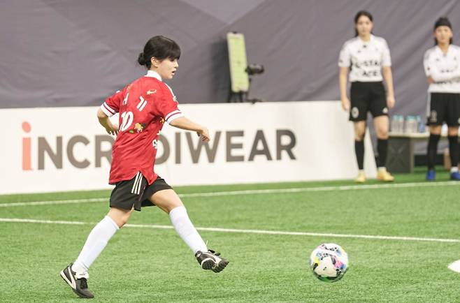 이날 경기가 열리는 경기장에서는 특별한 오프닝 공연도 준비돼 분위기를 한껏 끌어올렸다. ‘골때녀’ 선수협회장 조혜련과 밴드 페퍼톤스가 함께 만든 프로젝트 혼성 그룹 ‘메카니즘’이 무대에 올라 열정 가득한 공연을 펼쳤고, 이들의 신나는 무대에 관중들은 뜨거운 환호를 보냈다. 독특한 조합과 유쾌한 퍼포먼스로 가득 찬 오프닝 무대는 이날 경기의 서막을 더욱 화려하게 열어주었다.