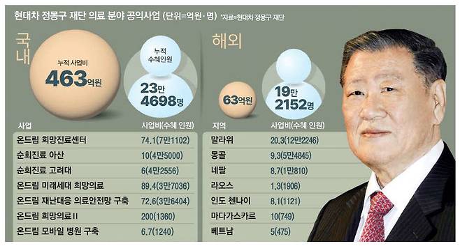 정무성 현대차 정몽구 재단 이사장은 "경제적으로 어려운 가정의 환아에게 질환 치료를 지원하는 것은 물론 이들이 건강하게 사회에 복귀할 수 있도록 학업과 정서 회복을 위한 다양한 프로그램도 운영하고 있다"며 "또 국내 대표 병원들과 협업해 의료 사각지대 지역을 찾아가는 방문 진료 서비스를 시행하고 있다"고 말했다.