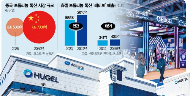 10여 곳에 달하는 국내 보툴리눔 톡신을 생산 기업들 중에서도 중국 보건당국의 정식 허가를 받은 제품은 레티보가 유일하다. 휴젤은 2020년 ‘레티보 100유닛’을 승인 받았고, 2021년 ‘레티보 50유닛’도 추가 허가를 받았다. 시장조사기관 ‘포스트 앤 설리번’에 따르면 올해 2조 5000억 원에서 2030년 7조 7000억 원으로 5년 만에 3배 가까이 성장할 것으로 예상된다. 전문가들은 시장 규모가 커지면서 대중화할 수록 안전성과 효력이 검증된 제품에 대한 수요가 늘어날 것으로 보고 있다.