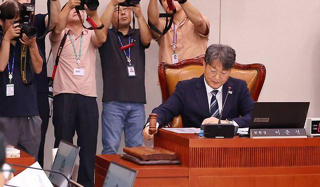 ▲ 1일 국회에서 열린 법제사법위원회 전체회의에서 더불어민주당 소속 이춘석 위원장이 의사봉을 두드리고 있다.