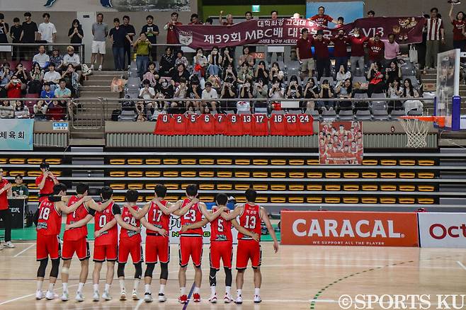 안녕하세요. 고려대학교 스포츠매거진 SPORTS KU 농구팀장 손영신입니다. 고려대는 6월 6일 중앙대전(79-66)과 6월 12일 성균관대전(62-49), 6월 17일 한양대전(74-53)까지 승리하며 상반기 일정을 전승으로 마무리했습니다.