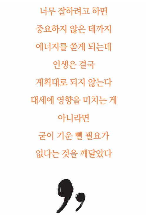 그는 “가족과 시간을 보내며 마치 새로운 세계가 열리는 듯 했다”며 “너무 잘하려고 하면 중요하지 않은 데까지 에너지를 쏟게 되는데, 인생은 결국 계획대로 되지 않는다. 대세에 영향을 미치는 게 아니라면 굳이 기운 뺄 필요가 없다는 것을 깨달았다”고 했다.