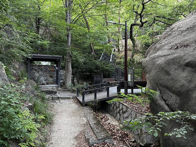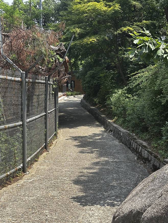 | ▲ 민주 숲길 2022년 청와대와 인접한 북악산 남측 사면 개방에 따라 누구든 걸을 수 있게 된 남측 탐방로의 입구인 삼청안내소 부근 |