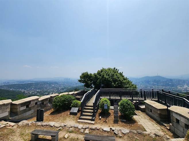 | ▲ 북악산 남측 탐방로 전망쉼터 남측 사면의 경사진 탐방로는 전망이 좋다. 곳곳에 전망쉼터가 잘 갖춰져 있다. |