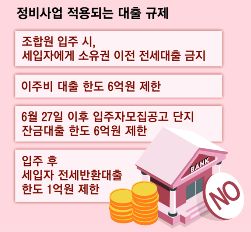 먼저 이주 단계에서 대출금이 6억원 이하로 제한된다. 지난달 27일까지 관리처분인가를 받지 못한 단지가 대상이다.