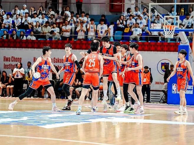 용산고가 지난 29일 싱가포르 칼랑 테니스 허브에서 개최되는 '제1회 NBA 라이징 스타 인비테이셔널'에서 중국 칭화대 고등학교를 97-48로 꺾고 초대 챔피언이 됐다.