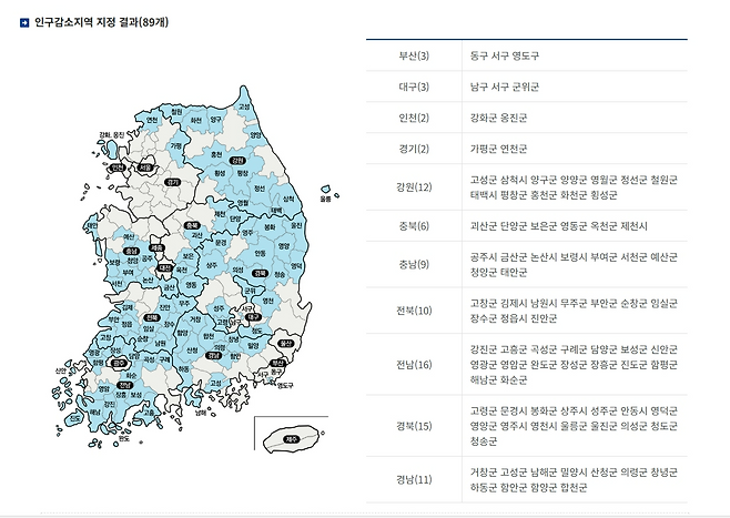 지난해 우리나라 기초자치단체 228곳 중 130곳은 소멸 위험에 진입한 지역으로 분류됐다.