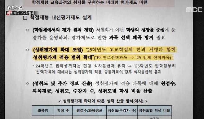 [TV리포트=한수지 기자] 'PD수첩'이 교교학점제와 상대평가의 문제점에 대해 지적했다.