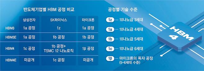 현재 HBM 시장은 SK하이닉스가 주도하고 있다. SK하이닉스는 1b 공정을 기반으로 세계 최초로 HBM3E 12단 양산에 성공했다. 주요 고객사에 HBM4 샘플도 공급했다. 이 제품은 엔비디아의 차세대 그래픽처리장치(GPU)에 탑재될 메모리로, SK하이닉스는 세계 최대 HBM ‘큰손’인 엔비디아의 핵심 파트너로 올라섰다.