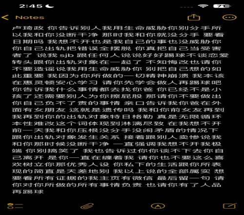 충격적인 폭로는 여기서 끝이 아니었다. 폭로자는 사적으로 연락을 시도한 루치정의 아버지에게도 "난 당신 아들이 바람을 피우고, 다른 사람과 잤으며 미성년자가 방을 잡고 다른 사람과 누드 채팅을 하고, 담배와 술을 마신 증거가 있다. 나이 문제도 의문이다. 축구 대표팀의 미래 스타가 이런 사람이라는 걸 원치 않을 거라 믿는다"라고 쏘아붙였다.