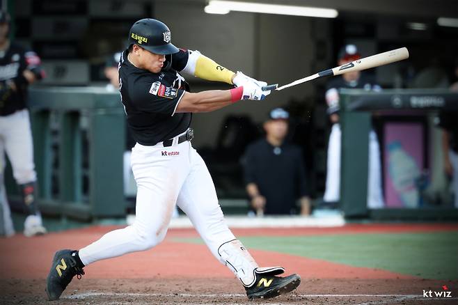 안현민은 kt 타선이 박주성에게 계속 끌려간 6회 말 2사 주자 없는 상황에서도 대형 아치를 그렸다. 커브 2개에 이어 들어온 가운데 포크볼을 당쳐쳐 좌월 장외 홈런으로 연결했다. 시즌 15호 홈런이자 연타석포. 5월 2일 키움전, 6월 12일 롯데 자이언츠전에 이어 두 번째 멀티포였다.