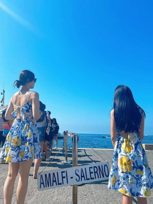 공개된 사진 속 이탈리아를 여행 중인 것으로 보이는 손태영과 딸은 뒷모습만 보이고 있지만 시원한 여름 드레스를 맞춰 입고 나란히 서서 아름다운 풍경을 바라보고 있다.