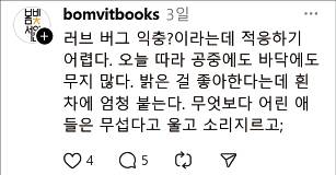 사회관계망서비스(SNS)에서는 ‘러브버그는 과연 익충인가’를 두고 다양한 반응이 이어지고 있다. 한 네이버 블로거는 “러브버그는 사람을 물지도 않고 진드기도 없애주는 익충”이라며 “1∼2주면 사라진다니 그동안 실눈 뜨고 다녀보겠다”고 유쾌한 의견을 남겼다. 또 다른 블로거는 “징그럽다고 무조건 박멸하는 건 위험하다”며 “생태계가 망가지면 사람도 힘드니 좀 참아보자”고 했다.