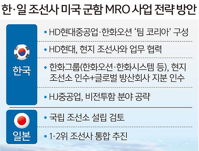 미국 해군의 함정 유지·보수·정비(MRO) 시장을 놓고 한국과 일본 조선업계가 사활을 건 경쟁에 나설 태세다.