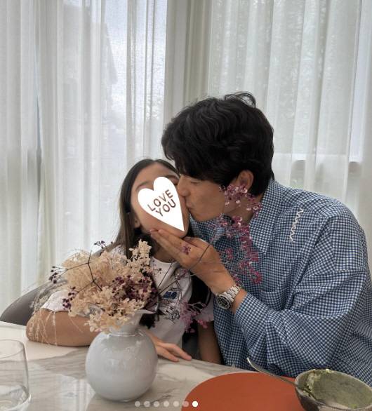 사진 속에는 8살 어린 남편 옆에서도 여전한 미모와 동안을 유지 중인 한혜진과 딸에게 뽀뽀하는 다정한 아빠 기성용의 모습이 담겨 있다.