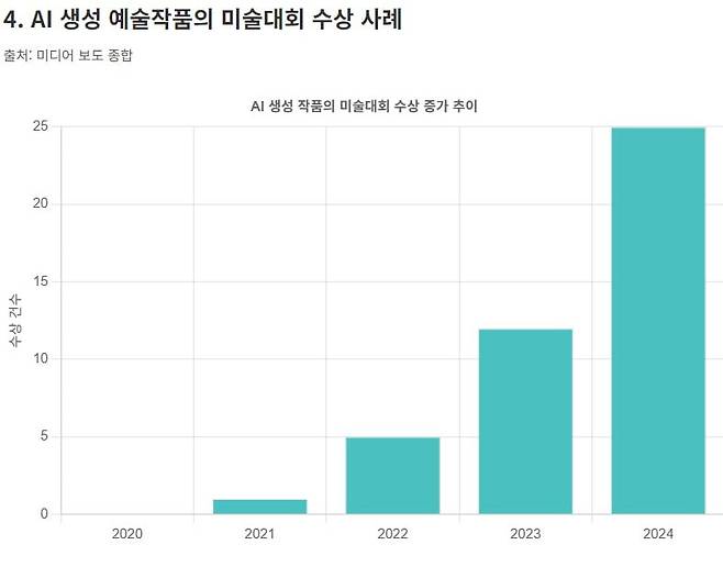 창의성도 인간만의 것이라고 주장하기 어렵게 됐다. 알파고 대국에서도 전문가를 당황하게 한 건 알파고의 ‘창의적인’ 한 수였다. 2022년 미국 콜로라도의 한 미술대회 디지털아트 부문에서 AI로 생성된 회화 작품 '스페이스 오페라 극장'이 1위를 차지해 큰 논란이 일기도 했다.