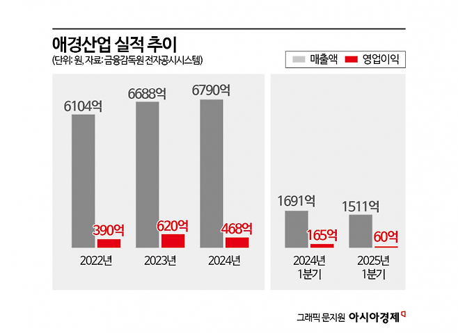 당초 애경산업은 제조시설을 모두 갖추고 있음에도 화장품 비중이 작아 흥행이 어려울 것이란 평가를 받았다. 중국 매출 비중이 높아 실적 상승세가 제한적으로 나타난 것도 영향을 줬다. 실제로 올해 1분기 기준 애경산업의 화장품 매출 비중은 30%로 지난해 1분기(37%)보다 줄었다. 매출액과 영업이익은 각각 459억원, 11억원으로 전년 동기 대비 27%, 88.4% 감소했다.