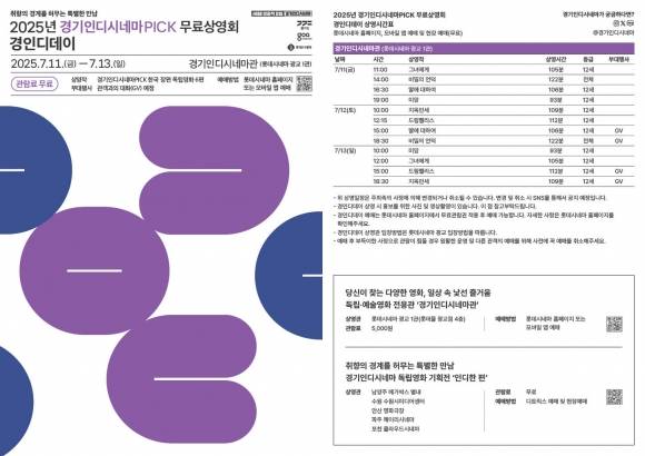 경기콘텐츠진흥원(경콘진)은 오는 7월 11일부터 13일까지 사흘간, 극장에 개봉한 장편 독립영화 6편을 무료 상영하는 특별 프로그램 '2025 경인디데이'를 개최한다고 2일 밝혔다.