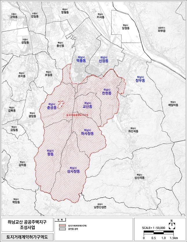 해제 대상은 덕풍동, 신장동, 창우동, 춘궁동, 천현동, 교산동, 항동, 상사창동, 하사창동 일원 총 18.09㎢로, 해당 지역은 국토교통부가 2024년 12월 26일부터 2025년 6월 30일까지 재지정했던 토지거래허가구역이다.
