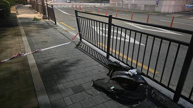 피해자가 있던 인도에는 철제 방호울타리(가드레일)가 있었지만, 차를 막지 못하고 속수무책으로 뽑혔습니다.