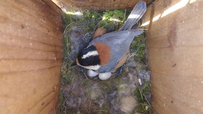 | ▲ 둥지상자에 알을 낳은 박새 |