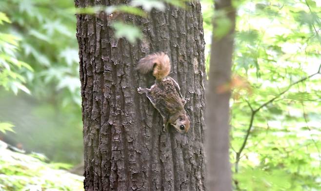 | ▲ 2022년 둥지상자에서 번식하고 나온 하늘다람쥐의 모습 |