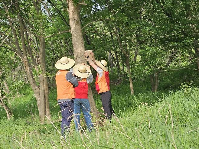 | ▲ 갈마공원에 둥지를 다는 아이들 |