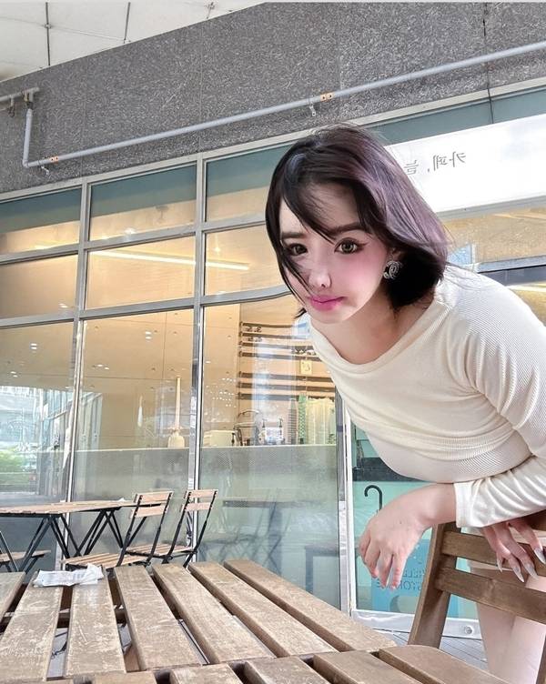 첫 번째 컷은 정면 클로즈업. 핑크 립과 짙은 블러셔, 위로 올린 윙크 포즈까지 더해지며 만화 같은 비주얼이 완성됐다. 짧게 다듬은 흑발과 오프숄더 톤의 리브드 원피스가 얼굴선을 더욱 강조했다.