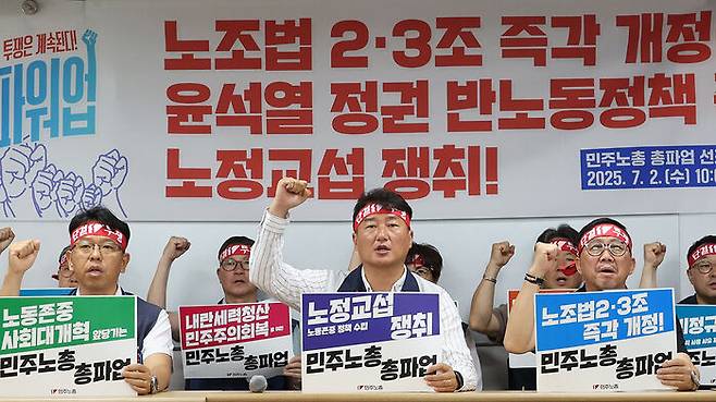 두 차례 국회를 통과했으나 윤석열 전 대통령의 거부권으로 입법이 무산된 노조법 2·3조를 즉각 개정하라고 촉구했습니다.