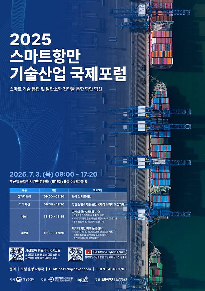 이번 포럼은 '스마트 기술 통합 및 탈탄소화 전략을 통한 항만 혁신'이라는 대주제 하에 ▲항만의 탈탄소화 ▲차세대 항만 자동화 기술 ▲데이터 기반 미래 운영전략이라는 소주제별로 발표 및 토론 형식으로 진행된다.
