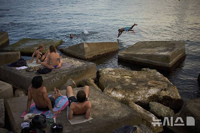 [바르셀로나=AP/뉴시스] 스페인에 무더위가 이어진 1일(현지 시간) 바르셀로나 해변을 찾은 시민들이 물놀이와 일광욕을 즐기고 있다. 2025.07.02.