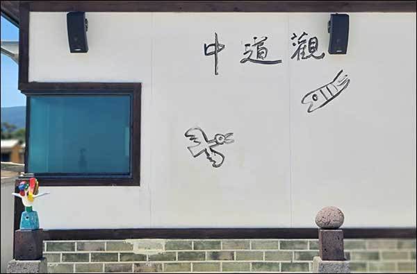 | ▲ 중도관 왈종미술관 옥상 벽에는 중도관(中道觀)이라는 이왈종 화백의 철학을 엿볼수 있는 글귀가 적혀있다. |