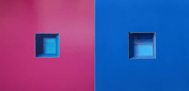 | ▲ (좌)A blue box 24-72-26, mixed media on canvas, 72*72cm, 2024 (우) A blue box 24-72-29, mixed media on canvas, 72*72cm, 2024 |