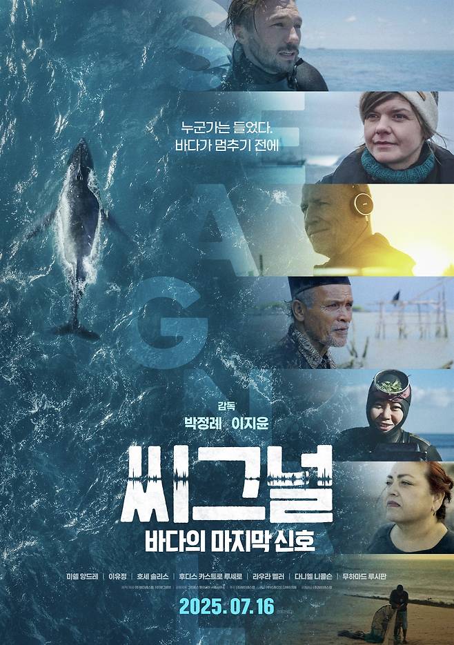 <씨그널: 바다의 마지막 신호>는 기본적으로 바다가 우리에게 끊임없이 보내는 '신호'에 주목한다. 소음과 쓰레기, 남획과 죽어가는 생명체들. 그러나 다큐멘터리가 진행되며 이 관계는 미묘하게 역전된다. 바다에 잠기고 있는 섬과 비어가는 바다에서 조업을 이어가는 어부, 유령 바다로 변해가는 제주에서 일하는 해녀.