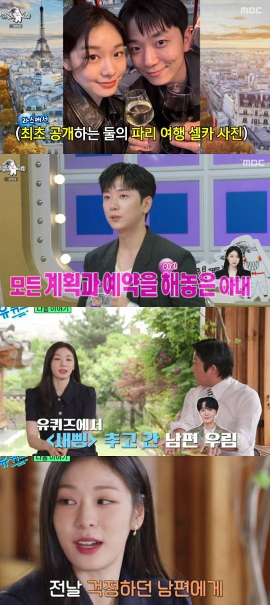 김연아는 민낯에 가까운 수수한 차림에도 여전한 아름다움을 뽐냈으며, 고우림은 아내를 향한 다정한 눈빛으로 '사랑꾼' 면모를 드러냈다.