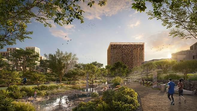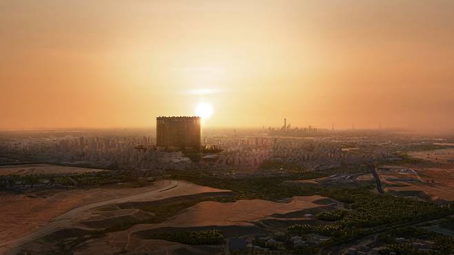 뉴무라바 중심에는 높이 400m 규모의 상징적 정육면체 건축물 ‘무카브’가 건설된다. 미국 뉴욕 엠파이어스테이트빌딩 20개 규모다. 다이크 CEO는 “무카브는 문화·관광·주거·상업·오락 등 다양한 요소를 갖춘 최고급 복합 시설”이라며 “단순한 건축물이 아니라 홀로그램, 인공지능(AI) 등 첨단 하이테크가 접목된 공간”이라고 강조했다.