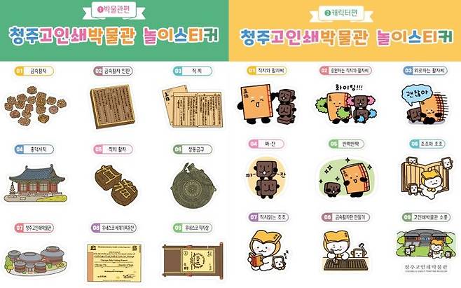 '직지와 활자씨', '조조와 호호'가 담긴 캐릭터편과 고인쇄박물관 전시물을 이미지로 딴 박물관편을 각각 만들었다.